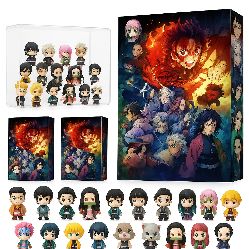 Crafted with the heart and discipline of a Demon Slayer, each reveal channels the fire, courage, and quiet strength of the journey. Open each door like you’re drawing your Nichirin blade — summoning heroes, rivals, and legends one day at a time.